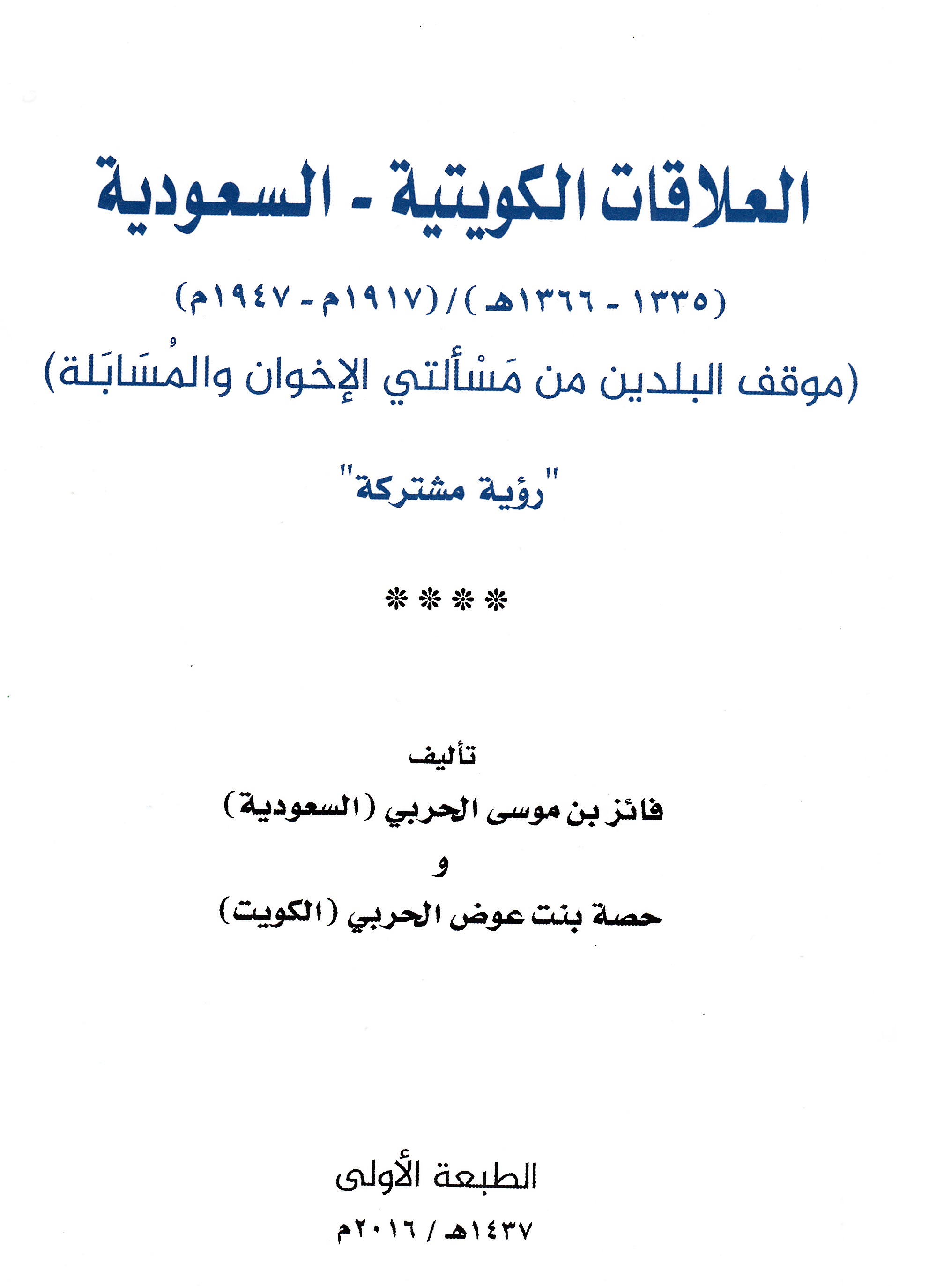 كتاب جديد يتطرق إلى موضوع العلاقات الكويتية - السعودية في الحقبة الممتدة من 1917م حتى عام 1947م , تتبع فيها الباحثان أهم الحوادث التي جرت في تلك الحقبة التاريخية , والتي لها انعكاستها على الأوضاع الداخلية والخارجية بين البلدين , في محاولة إلقاء الضوء عليها برؤية مشتركة أعدها باحثان كل منهما ينتمي إلى البلدين , وتأتي أهمية الكتاب من كونه يتناول حوادث ومواقف كان أثرها واضحا على طبيعة العلاقات الكويتية - السعودية وبخاصة ما يتعلق بقضتي الإخوان والمسابلة اللتين كانتا المحور الأساسي للكتاب , واعتمدا الباحثان على وثائق جديدة لم تنشر من قبل أهمها الوثائق الأهلية المحفوظة لدى للعائلات في البلدين والوثائق الإنجليزية