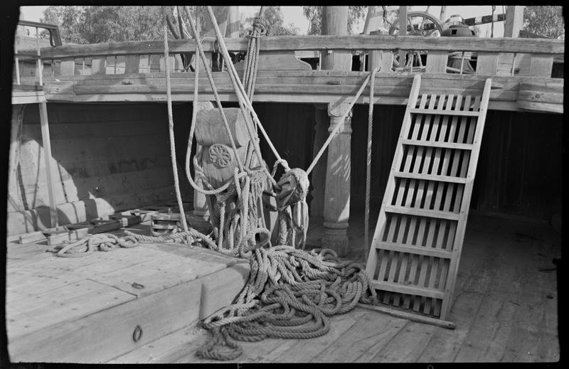 سطح احد سفن الكويت لاحظ جمال الزخرفة الخشبية على ظهر السفينة ...الصورة عام 1972