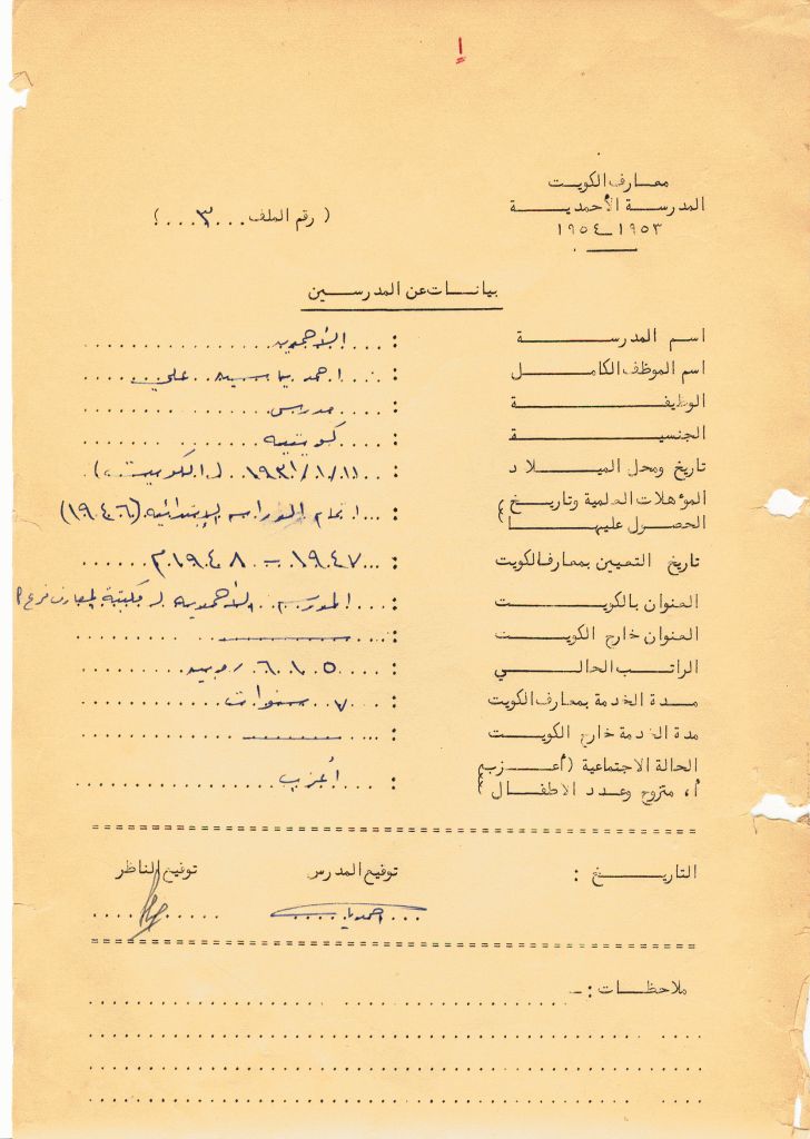 أخي الياسين . هذه الرواتب هي لغير الكويتيين . والمدرس الكويتي بذاك الزمن نادر . وراتبه اكبر من المدرس الوافد كتشجيع . مرفق مقابله مع السيد مصطفى ابو دقر / مقابلات ضيوف الكويت /التوثيق والذكريات .ويذكر عن راتبه بسنه 1954 الدروازة