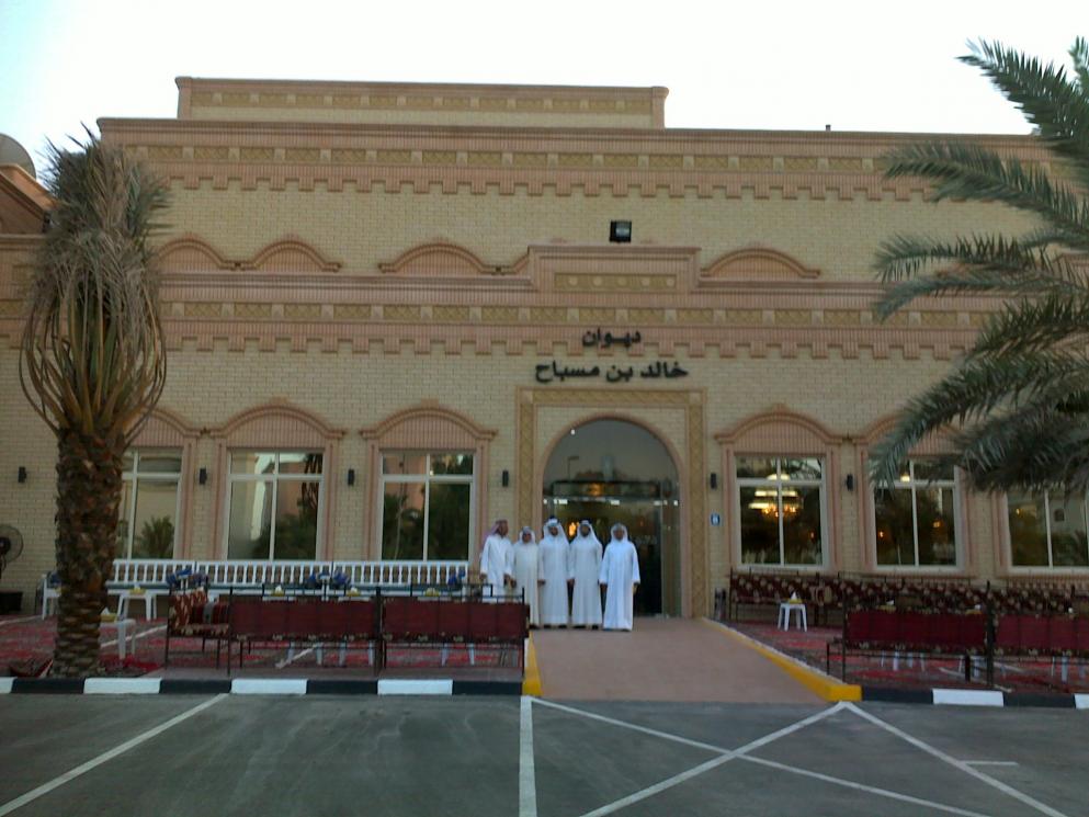 الديوان كما ذكرت لك، تأسس عام 1961 على يد عمي خالد بن مسباح المسباح رحمه الله، والذي توفي سنة 1988، وقبل أن يتوفى بربع ساعة أوصاني وكان في كامل صحته فقال لي: إذا مت يا مسباح فلا تغلقوا الديوان بعد موتي، فسألته: لماذا؟ فأجابني بالقول: كي لا يقول الناس ورواد الديوان أن الذي جمعهم وفرقهم هو شخص واحد.