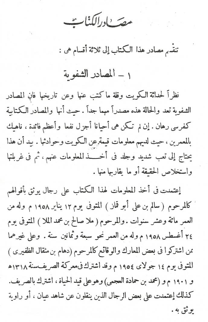 ذكر العم سيف بن مرزوق الشملان بعض الاشخاص الذي اخذ منهم الرواية الشفوية عن تاريخ الكويت