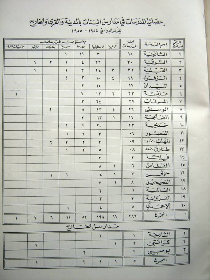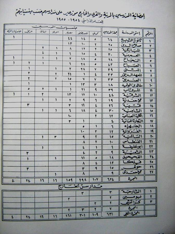 جداول باسماء مدارس الكويت 1955