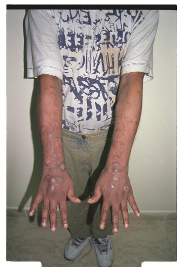 14- اضطراب الأصابع وخدوش في الوجه والذراع مع ظهور علامات حقن تحت منطقة الأذرع أو الهرش في الأنف من حين لآخر.