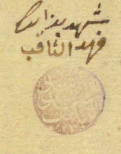 ختم فهد الثاقب على وثيقة كشاهد بتاريخ 29-9-1906