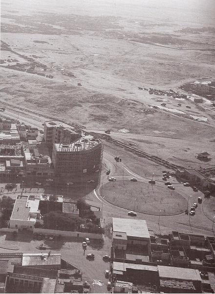 صورة تعود لأواخر الخمسينات ويبدو فيها جزء من الشامية وعمارة ثنيان الغانم وذلك بعد ازالة السور بالكامل