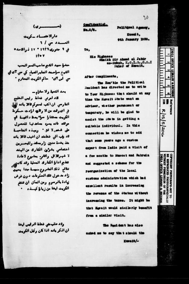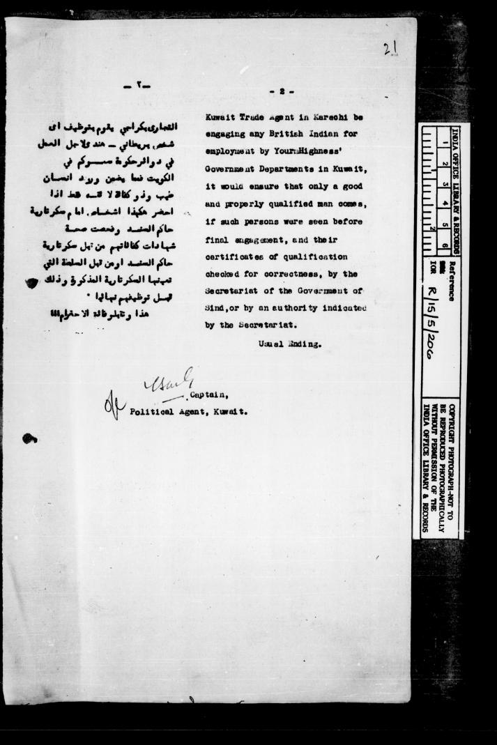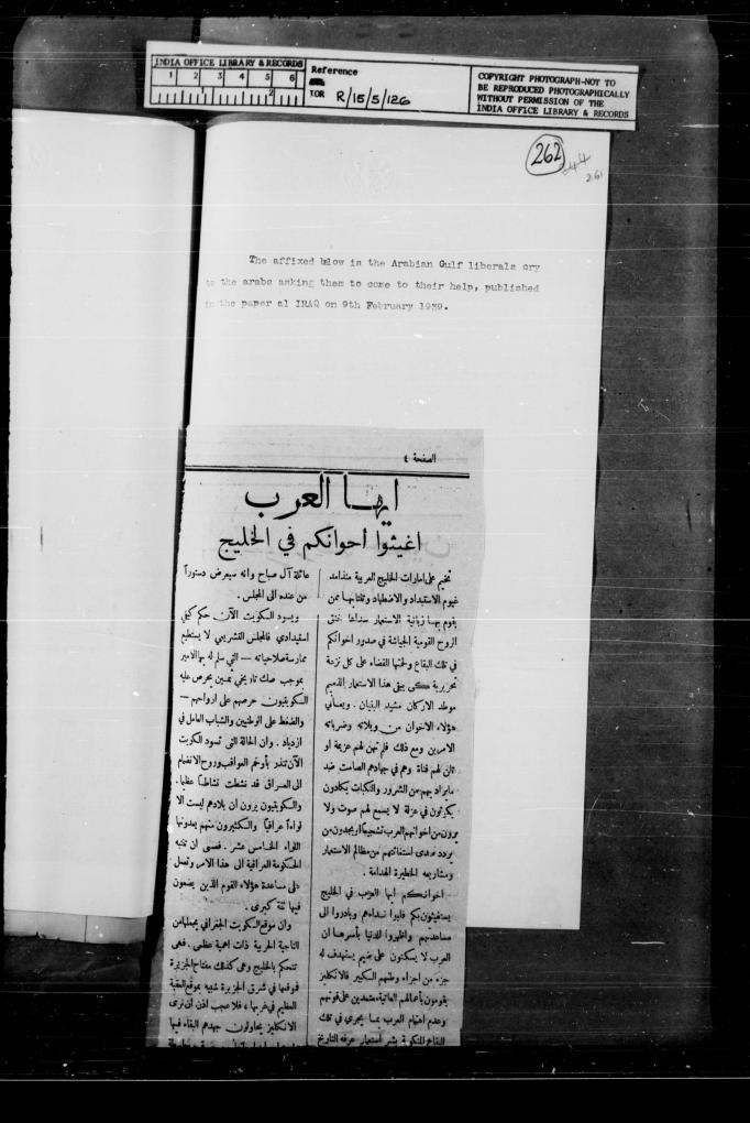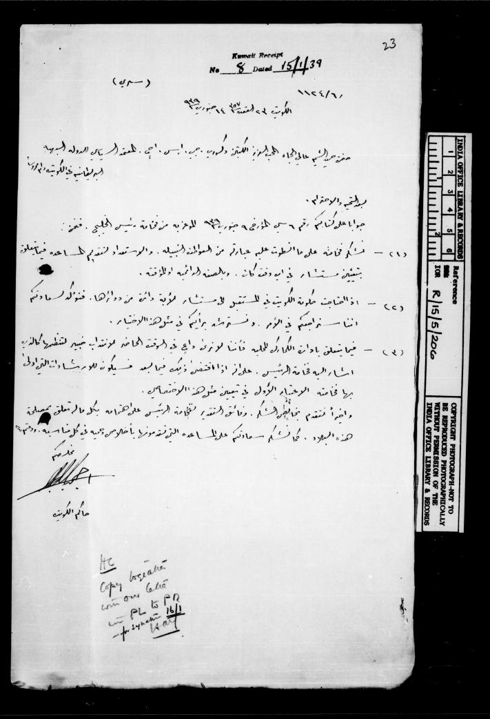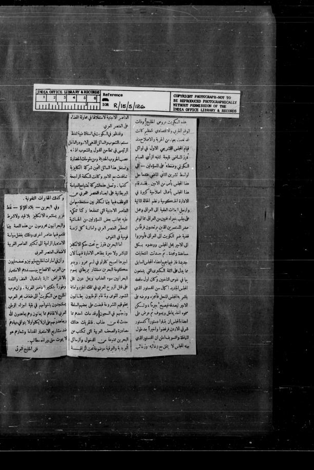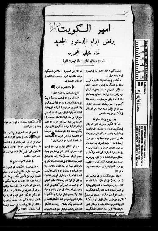 هذه الوثائق من الأرشيف البريطاني كما هو واضح من رقم الوثيقة في الجانب الأيمن من الوثيقة -وهذه الوثيقة عبارة عن نشرة وزعها شباب البحرين وقد اقتبسوا أخبارهم من مصادر متعدده- ومن ضمن ما كُتب في النشرة رفض أمير الكويت الشيخ أحمد الجابر لدستور المجلس التشريعي الثاني الذي أقره أعضاء المجلس كبديل للوثيقة التي كتبوها في المجلس التشريعي الأول 1938 ، وقد تردد الشيخ أحمد الجابر كثيرا في إقرار هذا الدستور والأمر الذي أدى إلى رفضه بعد تلقيه الدعم البريطاني وكذلك تمادي بعض أعضاء المجلس في التعبير عن وجهه نظرهم كتلك الرسالة التي أرسلوها وتحمل لهجة قوية وقد جاء في الرسالة ما نصه "... ولعل هذه اللحظة في تاريخ البلاد تكون من اللحظات الفاصلة؛ فإما إلى خير يحيط بك الإجلال ويحفك التقدير.. وإما إلى ضده، ونحن تهيأنا لكل أمر متوقع" والرسالة ذكرها العدساني في مذكراته.