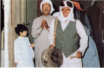 وفي أيـــــام العــــــيد طبعا عيد الفطر ..... يتواجد ابو طبيله ويشارك بالعيادي حتي يحوشه من الطيب نصيب مثل ما يقولون الاوليين :D وطبعا ... الطبل ملازمــة ومعلقه برقبته .... وبيده اليمين عصاة اللي يطق فيها الطبله الصغير لكن انا اعلمكم طبلته بالعيد غير اتعيد معاه :D يعني مزينها .... وحاط عليها كراكيش حتي تلفت النظر انه حتي الطبله معيده والصغار .... هم تقريبا فرقته اللي ملازمته واذا صار وقت الغدا كل من يتنغص له بشئ ... طيبه خاطر له وكلمه بالعيد اهي من العايــــدين الفايــزين :) وسلامتكم .... بنت النوخذه8 |