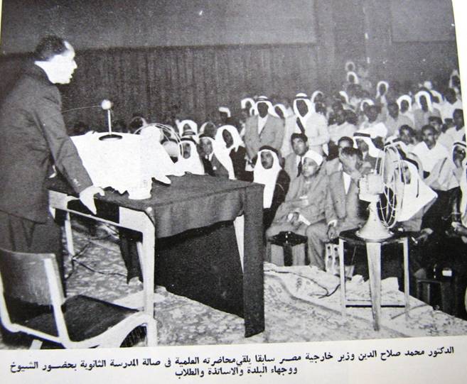 المرحوم الدكتور محمد صلاح وزير خارجية مصر في محاضرة ==الكويت 1955