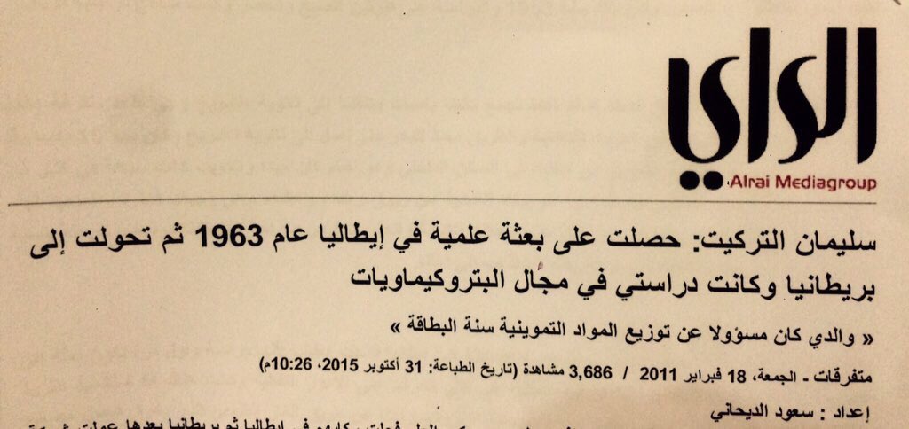 مقالة السيد سليمان التركيت لجريدة الرأي عند حصوله على بعثة علمية في إيطاليا عام 1963 وتحدث عن أم محمد فاطمة الحسينان وقال: