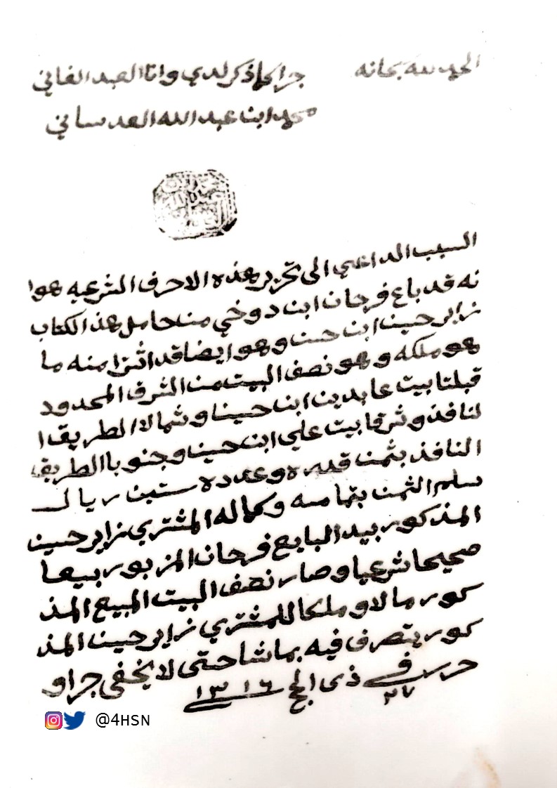 أضع بين أيدكم وثيقة عدسانية بختم القاضي محمد بن عبدالله العدساني ..