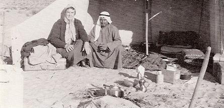 Humber used in all the desert journeys, and Ali in camp with Nasser Jabir Murri, 1968 Author and friends crossing to Taurt Island