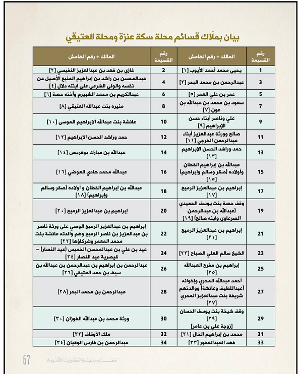 من كتاب معالم مدينة الكويت القديمة الجزء الثالث صفحة 79 بعض قسائم محلة سكة عنزة ومحلة العتيقي :