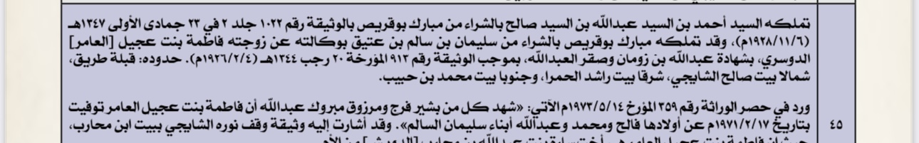 تملكه السيد أحمد بن السيد عبدالله بن السيد صالح بالشراء من مبارك بوقريص