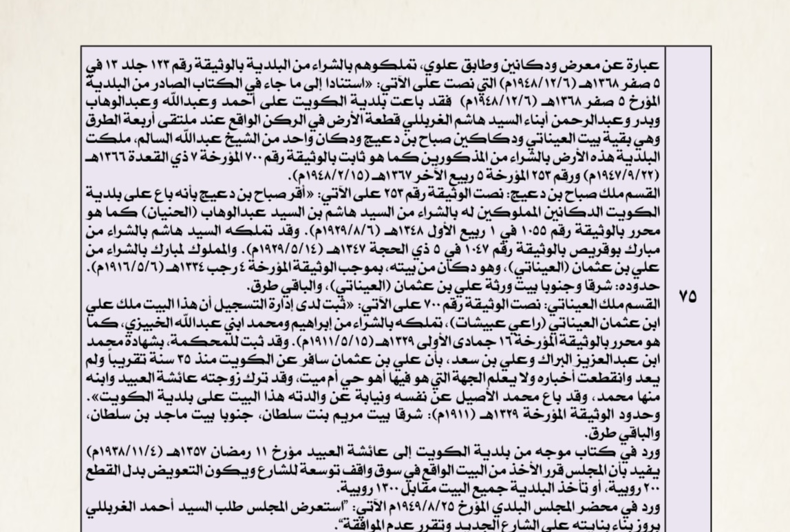 «أقر صباح بن دعيج بأنه باع على بلدية الكويت الدكانين المملوكين له بالشراء من السيد هاشم بن السيد عبدالوهاب (الحنيان)