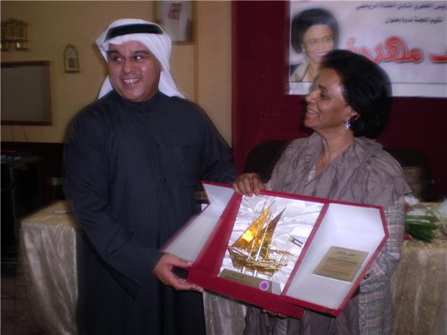 الشيخة فريحة الاحمد الجابر الصباح تكرم الاستاذ خالد عبدالله سليمان الشمروخ المحاضرة فى مهارات العرض والالقاء وكيفية مواجهة الجمهور فى ندوة بيوت مهددة التى تمة بتاريخ 21 \ 12 \2009 يوم الاثنين فى نادي الفتاة
