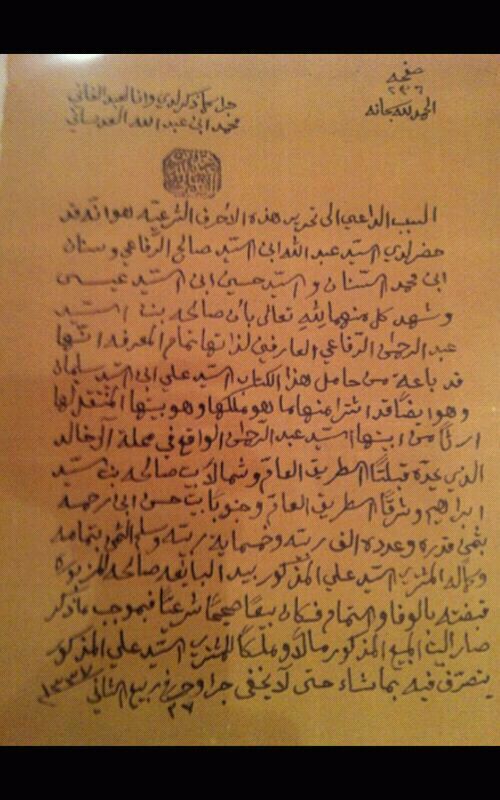 وثيقة عدسانية مهمة مؤرخة بالهجري سنة 1337 على صحابه أفضل الصلاة والسلام.