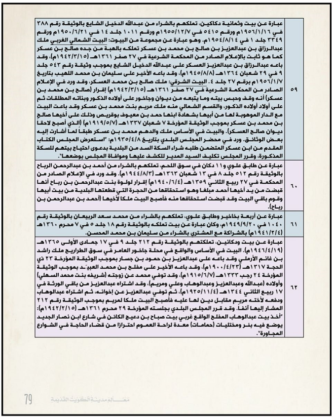 من كتاب معالم مدينة الكويت القديمة الجزء الثالث صفحة 79 بعض قسائم محلة سكة عنزة ومحلة العتيقي :