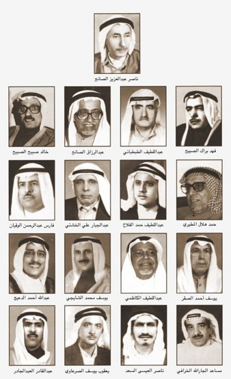 نصف اليوسف النصف ، عبدالحميد عبد العزيز الصانع ، بدر خالد البدر ، أحمد البشر الرومي ، عبدالعزيز عبد الله الصرعاوي ، و سكرتير اللجنة إبراهيم الشطي .