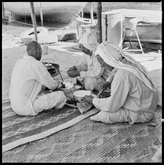 استراحة لتناول الشاي ... و شرب القدو لبحارة كويتيين 1972