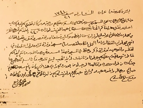 «... ومن طرف محمد العلي الوزان؛ سلّمنا له خطه [أي الرسالة الموجهة إليه]، وكثير قنّعناه، ولا قَصَّر وافق؛ ويقول: "أخاف إنهم يحملوني القضاء وأنا ما أتحمّل! إن كان القصد إمام مسجد وقراءة قرآن أو قراءة الأولاد في الفقه والتوحيد أو قراءة ذكر ووعظ في المسجد فهذا أسِدّ، وغيره ما أقدر". وأنتم إذا لكم خاطر إنه يقدم عليكم عرفونا، وأنا قلت له إذا تحب اليوم تتوجه فأنا أسلم لك جميع حاجتك من نول [أجرة النقل على السفينة] ومصرف. وقال: "ما أتوجه إلا من بعد الجواب"».